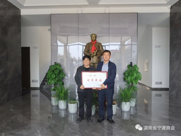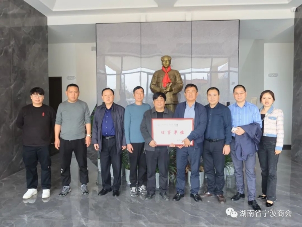 3月10日,正當(dāng)全國(guó)兩會(huì)召開之際,湖南省寧波商會(huì)會(huì)長(zhǎng)章勤豐、長(zhǎng)沙市寧波商會(huì)會(huì)長(zhǎng)徐國(guó)軍、副會(huì)長(zhǎng)朱東波、潘存浩及理事謝軍明、秘書長(zhǎng)梅元喜、辦公室主任蔣昀益、秘書顏雯倩到商會(huì)理事單位湖南南舟新材料有限公司走訪調(diào)研,傳達(dá)學(xué)習(xí)全國(guó)兩會(huì)和習(xí)近平總書記重要講話精神,并給該公司授予湖南省寧波商會(huì)理事單位牌匾。