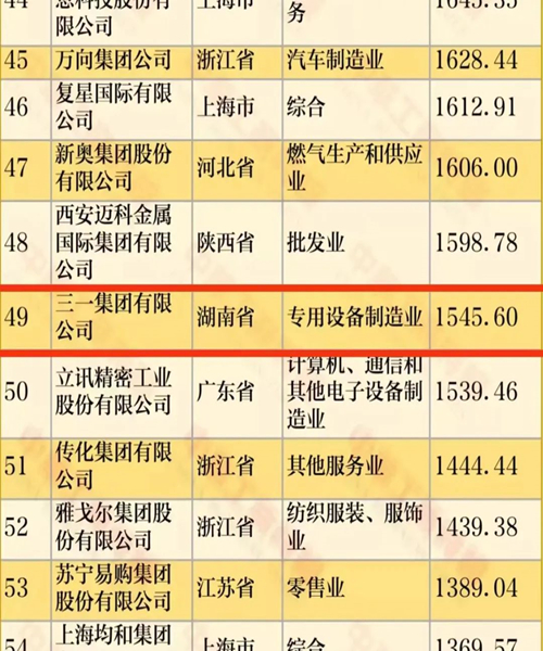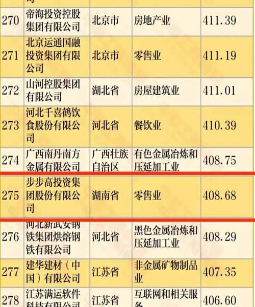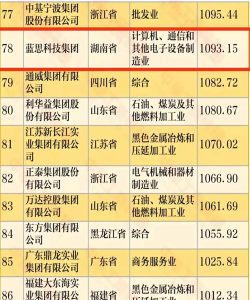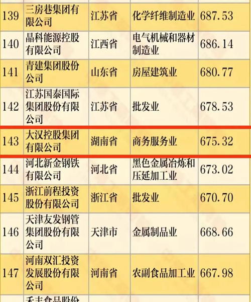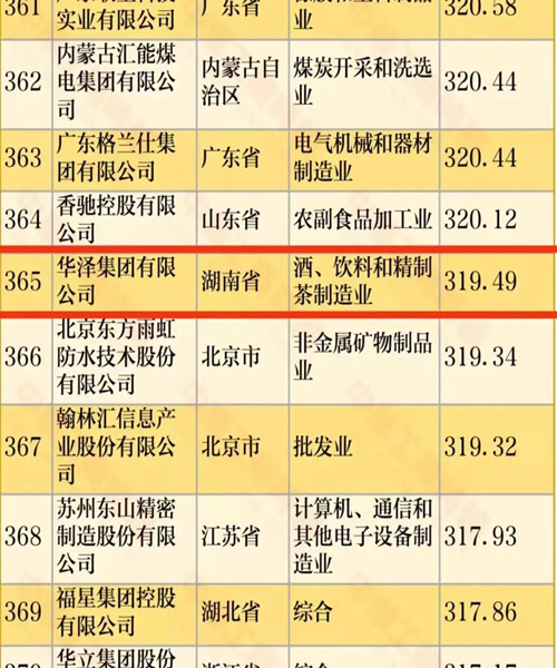 5家企業(yè)分別是三一集團(tuán)有限公司(第49位)、藍(lán)思科技集團(tuán)(第78位)、大漢控股集團(tuán)有限公司(第143位)、步步高集團(tuán)(第275位)和華澤集團(tuán)有限公司(第365位)。